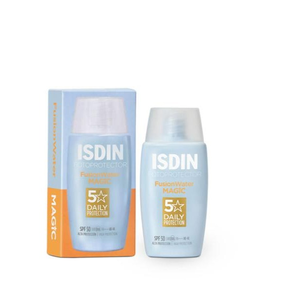 ضد آفتاب ایزدین فیوژن واتر مجیک یکی از انواع ضد آفتاب های برند ایزدین است که بافتی فوق العاده سبک و زود جذب روی پوست داشته و برای استفاده روزانه ایده آل است. این ضد آفتاب علاوه بر محافظت بالا از پوست در برابر اشعه های مضر نور خورشید با SPF50، پوست را رطوبت رسانی کرده، چربی آن را کنترل میکند و دارای خاصیت آنتی اکسیدانی است. ضدافتاب ایزدین مجیک برای پوستهای چرب ایده آل است، فاقد روغنهای معدنی است، جلوهای کاملا مات روی پوست دارد و احساس چربی و سنگینی ایجاد نمیکند.